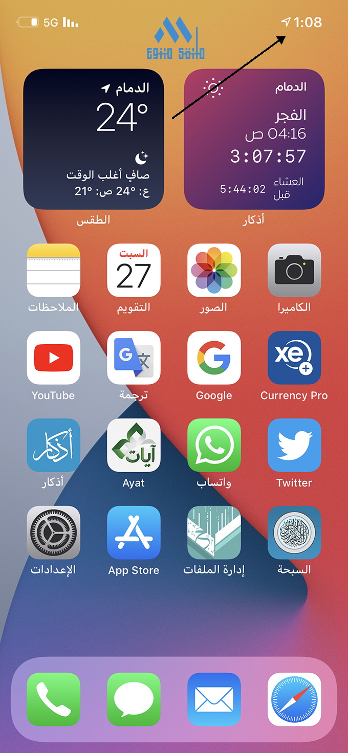 السلام عليكم ورحمة الله وبركاته نلاحظ عدم كتابة حرف ص وم عند الساعة وبهذا ما ينعرف نحن في صباح أو في مساء خصوص إذا صورت الشاشة لا شك وهذه مشكلة من الشركة Apple والشرح تجعله 24 ساعة. كما في الصور المشكلة: ![]() ![]() وهذا الشرح تجعله 24 ساعة. الإعدادات: ![]() ![]() ![]() سوف تتغير الساعة إلى 24 في الظهر.